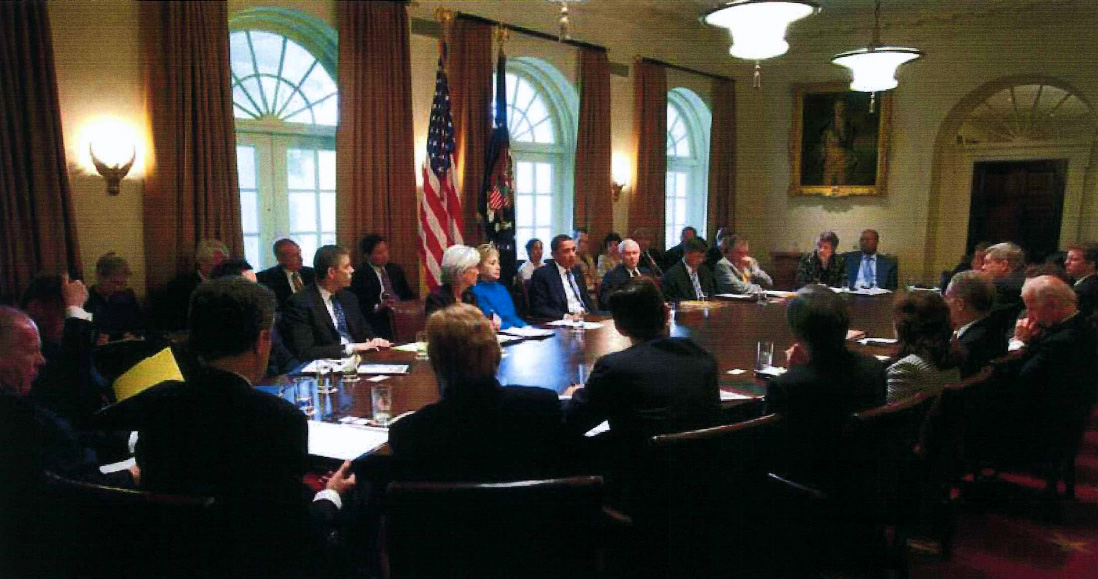 The interesting thing about it was that outside in the hallway there’s a large box containing 50 or so numbered small cubicles. We were told that everyone who enters the Cabinet Room has to surrender their cell phone and have it placed there- No Exceptions!